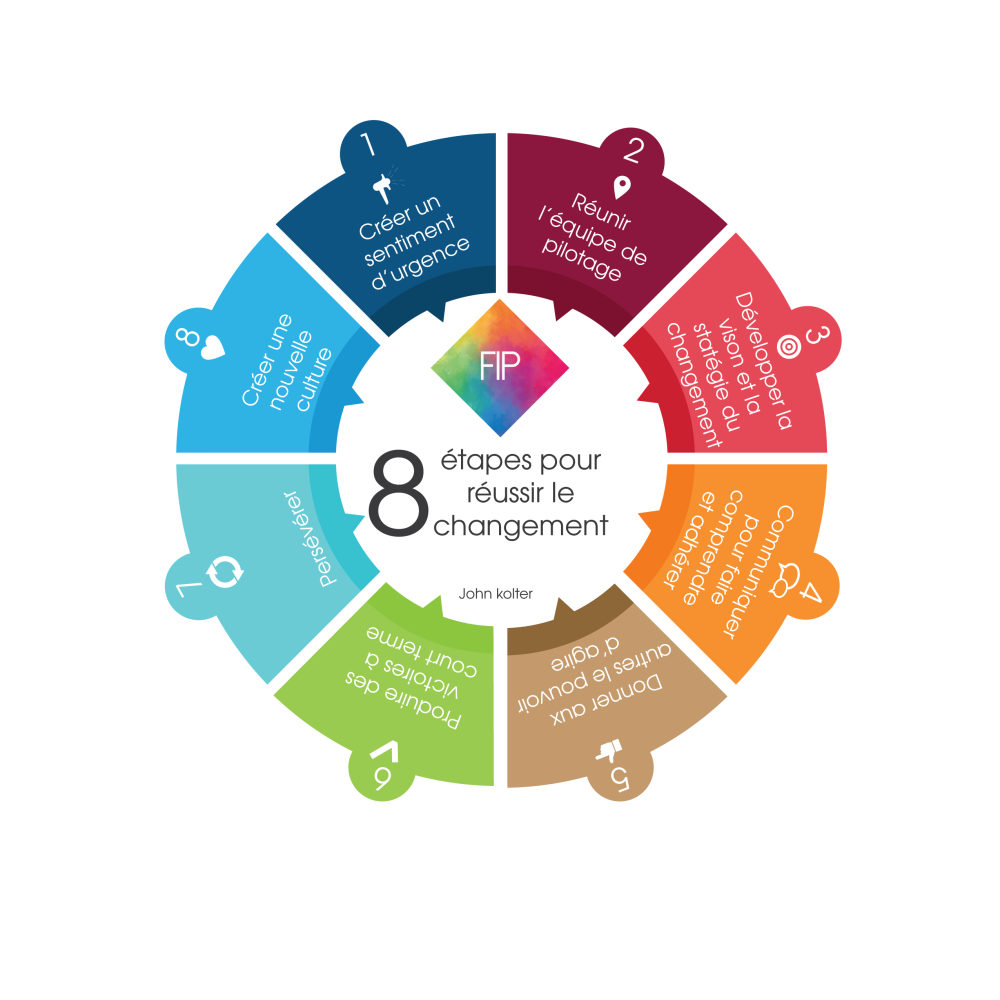 * Savoir accompagner les 8 étapes du changement de John Kotter et maîtriser les 12 outils indispensables au pilotage du changement.